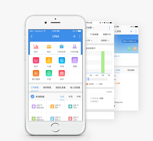 - 团队即时协作,统一管理防止撞客,实时显示员工新客户录入和老客户的跟进情况